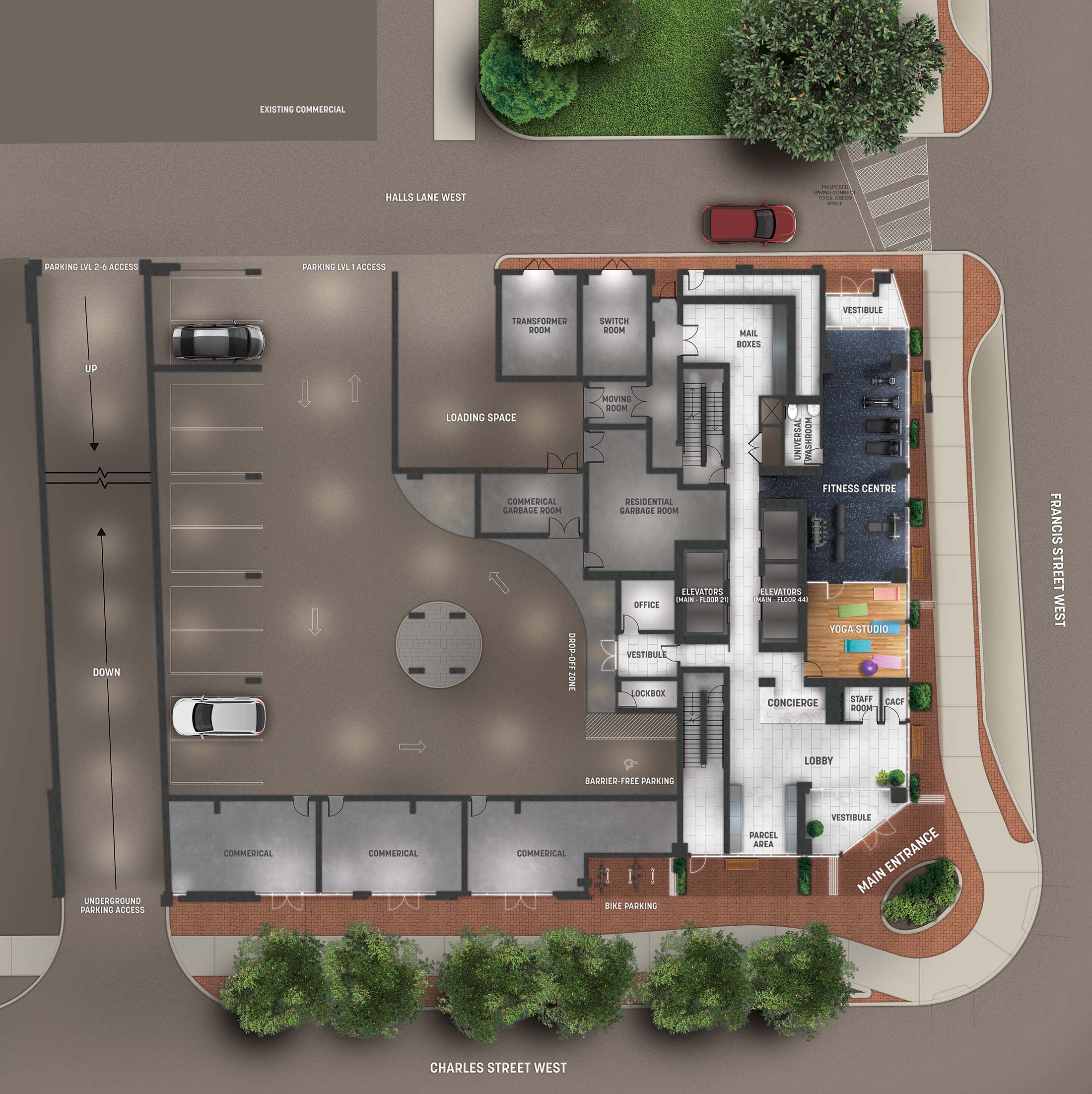 Along Charles Street, at the base of TEK Tower’s podium are a cluster of retail shops and services accessible from the street by residents and neighbourhood locals alike.