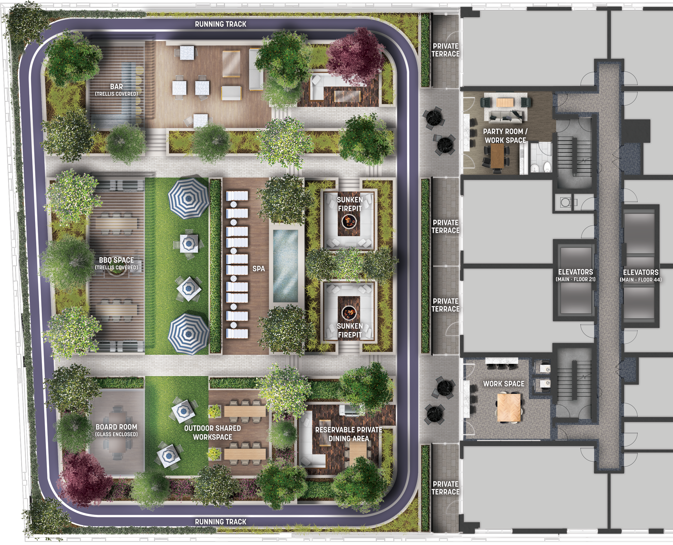 TEK Tower’s Roof-Top Park offers the perfect backdrop for recreation time alone or with friends.