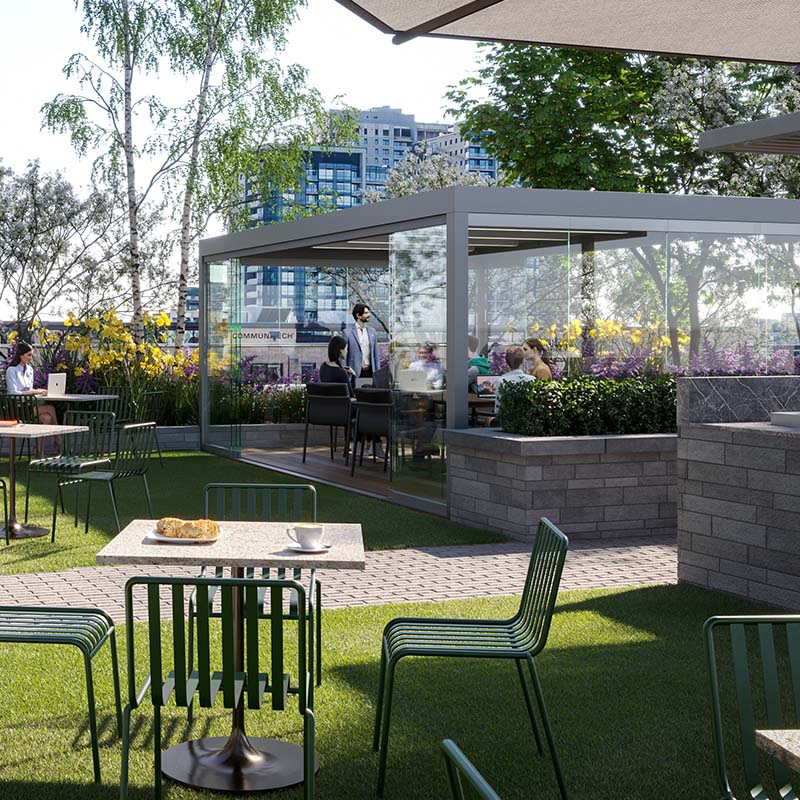 Ideal for more dynamic meetings this space expands out onto the Roof-top Park creating the perfect backdrop to inspire your creativity.