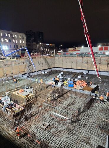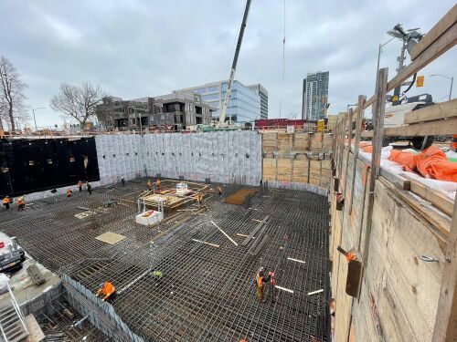Excavation has been completed on site. We are currently completing rebar installations for the footings. Saturday February 11th we completed a large raft slab concrete pour that started at 4am and lasted 20 hours from start to finish. The last sections of the raft slab concrete pour were completed February 16th. We have scheduled the tower crane erection for later this month. Please see the pictures below.